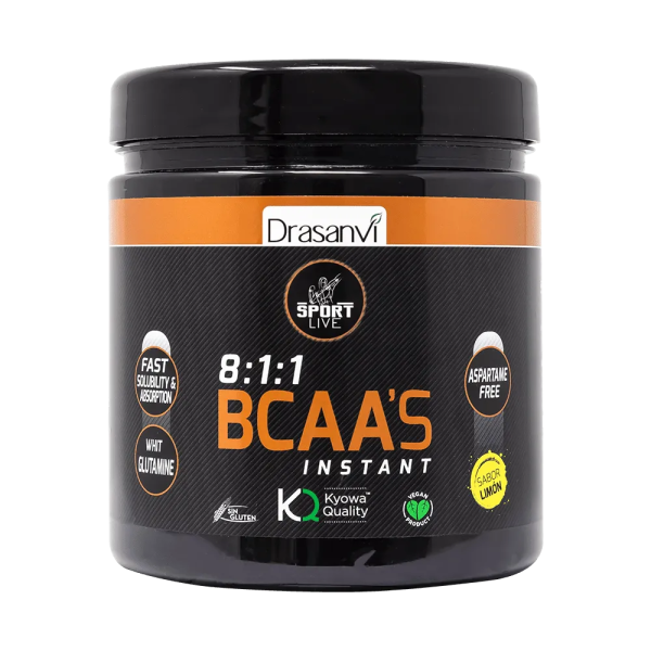 Los aminoácidos ramificados, también llamados BCAA′s (Las siglas de Branched-Chain Amino Acids) son tres: Leucina, Isoleucina y Valina. Se trata de aminoácidos esenciales que nuestro cuerpo no es capaz desintetizar por sí mismo, siendo necesario incorporarlos en nuestra dieta.Los aminoácidos son las unidades esenciales de las proteínas, que posteriormente entran a formar parte de músculos, cartílagos e, incluso, son fundamentales para el sistema inmunitario. En ciertas situaciones como el ejercicio intenso, nuestro cuerpo degrada los aminoácidos que forman parte de nuestras proteínas musculares. Por este motivo, y en esta situación, es interesante el consumo de aminoácidos ramificados. Siguiendo las recomendaciones de los últimos estudios publicados, incluimos una proporción de BCAA′s 8:1:1 (L-Leucina, L-Isoleucina y L-Valina, respectivamente), con mayor cantidad deL-Leucina que la proporción utilizada tradicionalmente, de 2:1:1. La fórmula está reforzada con L-Glutamina.