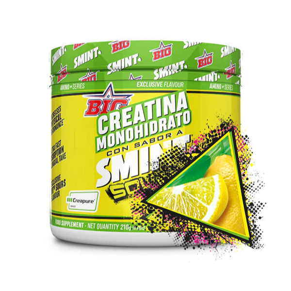 La familia CREABIG crece con la nueva CREATINA MONOHIDRATO SMINT® SOURS edición exclusiva Smint® con Creapure®, Smint® Sours LEMON, para que elijas tu favorito y te pases al lado más ácido de BIG®.
